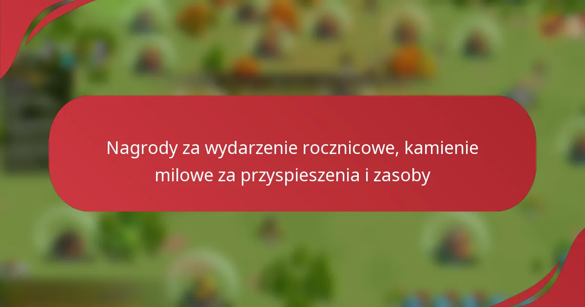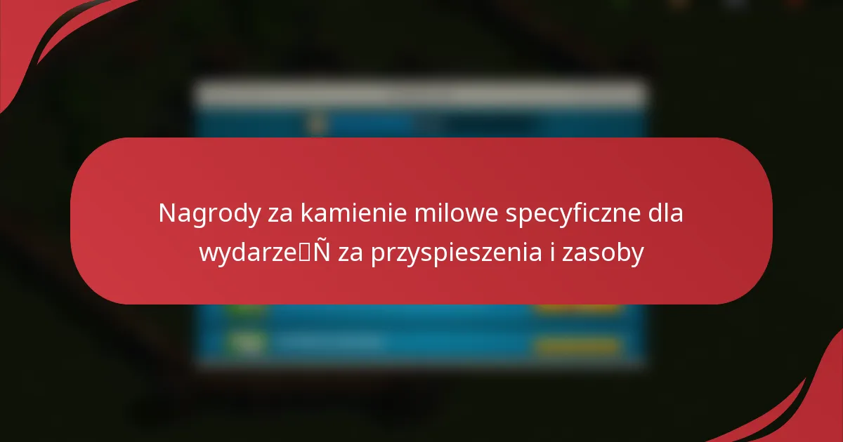 Nagrody za osiągnięcie kamieni milowych w wydarzeniach to nagrody przyznawane graczom za osiągnięcie określonych celów podczas wydarzeń w grze. Nagrody te często obejmują przyspieszenia i zasoby, które poprawiają rozgrywkę i postęp.